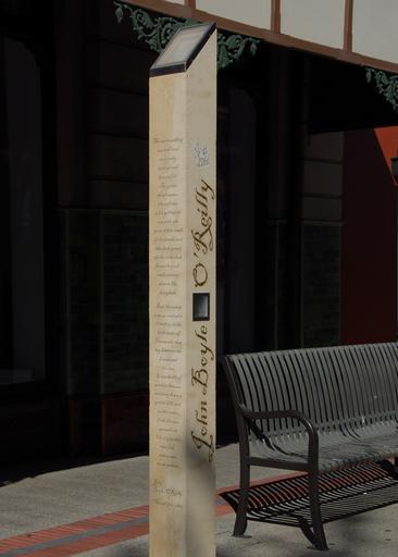 | Keywords: O'Reilly installation, Fremantle.jpg Photograph of one of the five installations on the Fremantle Western Australia City Council's Writers Walk described in pdf files of their cultural and heritage trails linked from this http //www fremantletrails com au/ document This installation or 'totem' concerns John Boyle O'Reilly and a gives a selection of his writing The surrounding sea and land were very strange and beautiful The green shoal water the soft air with yellowish warmth the pure white sand of the beach and the dark green of the unbroken forest beyond made a scene almost like fairyland But there was a stern reminder of reality in the little town of Fremantle that lay between the forest and the sea It was built of wooden houses running down a gentle hill; and in the centre of the houses spread out like a gigantic starfish was a vast stone prison John Boyle O'reilly Moondyne 1880 own 2007-09-21 The Original work is by the artist Bridget Norton As public art it is presumed to also be public domain as above Fremantle Western Australia Images by Cygnis insignis Memorial walks |