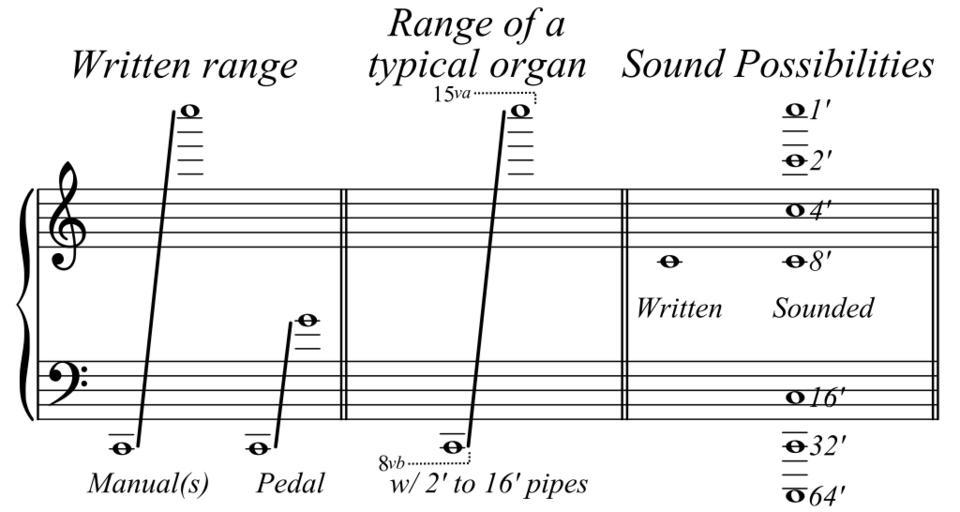 Keywords: Organ Range.svg en Musical range of a typical modern organ with 61-key manuals and 32-key pedalboard Many organs have greater ranges depending on their construction and some have lesser ranges Although this typical range shows pipes from 16' to 2' many organs have pipes ranging from 32' to 1' Only a few exceptional organs have 64' pipes Information used to create this image but not the image is from http //www agohq org/guide/pages/index1 html here own Jaksmata 2008-09-18 Organ_notes Wind instrument ranges |
