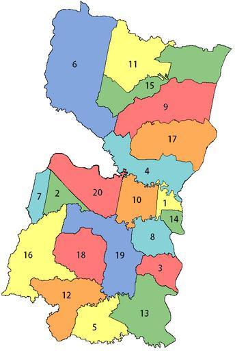 Keywords: Organización Política de Alto Paraná.PNG en Map of Alto Paraná with their twenty districts es Mapa de Alto Paraná con sus veinte distritos own Karl Segankochenko 2011-01-08 Cc-zero Alto Paraná Department