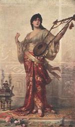 Keywords: Orientalgirlwithharp-sichel.jpg Junge Frau mit Zupfinstrument oil on canvas 86 4 x 50 8 cm http //www iment com/maida/family/mother/vicars/nathanielsichel htm Creator Nathaniel Sichel < 1907 Nathaniel Sichel Standing women in art Orientalist portrait paintings Lyres in art Paintings of women holding musical instruments PD-old-100 |