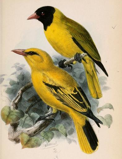 Keywords: Oriolus nigripennis & Oriolus auratus notatus 1870.jpg <br /> « Oriolus nigripennis » Oriolus nigripennis Black-winged Oriole « Oriolus notatus » Oriolus auratus notatus Subspecies of African Golden Oriole <br /> « Oriolus nigripennis » Oriolus nigripennis Loriot à ailes noires « Oriolus notatus » Oriolus auratus notatus Sous-espèce de Loriot doré http //archive org/stream/ibis61870brit page/n617/mode/2up The Ibis ser 2 vol 6 creator John Gerrard Keulemans 1870 PD-old-100 Oriolus nigripennis Oriolus auratus Ibis 1870 |