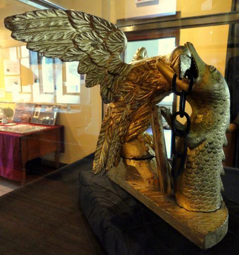 Keywords: Ornament of alligator & eagle, c. 1860-1865- Framingham History Center - DSC00468.JPG Ornament of alligator eagle c 1860-1865 taken from library of Executive Mansion of Jefferson Davis Richmond Virginia by General George Henry Gordon on April 4 1865 Exhibit in the Framingham History Center Edgell Memorial Library 3 Oak Street Framingham Massachusetts USA Photography was permitted in the museum without restriction I took this photograph 2011-07-09 14 37 26 Daderot Public domain Framingham History Center George Henry Gordon |