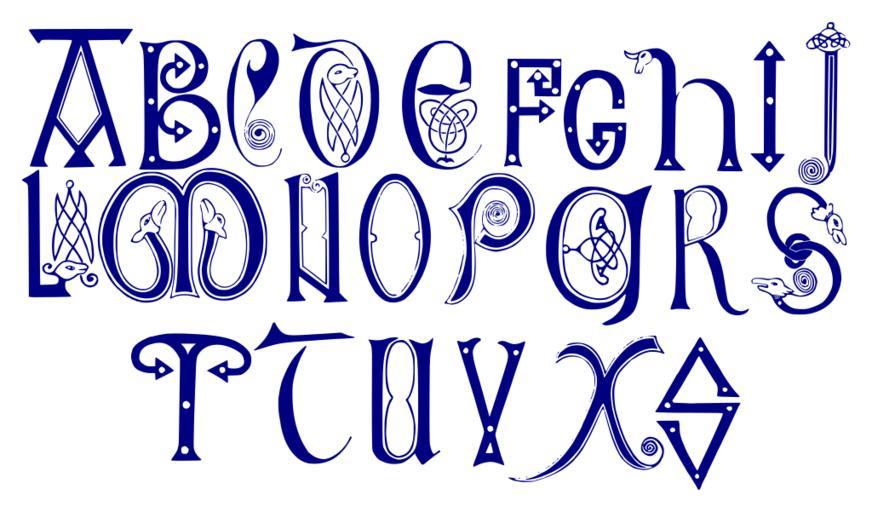 Keywords: Ornamental Alphabet - 8th-9th Century Anglo-Saxon.svg en Ornamental Anglo-Saxon alphabet from the 8th-9th century http //www fromoldbooks org/DelamotteOrnamentalAlphabets/pages/003-8th-and-9th-centuries/ Delamotte F vectorized by JovanCormac 8th-9th century PD-old Alphabets |