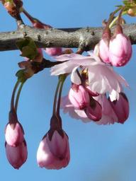 Keywords: ornamental cherry bud flowers pink japanese cherry trees cherry blossom blossom bloom road spring sky