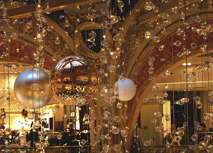 Keywords: ornaments decoration christmas baubles bubbles christmas decoration the interior of the christmas ornaments mood photo gallery shops trade figure a wealth of splendor the tradition of culture christmas tree france paris the delicacy joy custom the dome heat