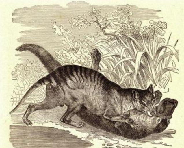 Keywords: Ornithotiger.JPG Thylacine attacking a platypus Cassell's Natural History 1854 author Peter Martin Duncan Anonymous-EU PD-1923 Original upload log en wikipedia FunkMonk CommonsHelper en wikipedia Ornithotiger JPG 2009-03-28 10 33 Mariomassone 392×315× 35891 bytes <nowiki> Thylacine attacking a platypus Unnamed wildlife journal clipping dated 1895 Resolution is lower than original work To illustrate the hunting behaviour</nowiki> __NOTOC__ Thylacinus cynocephalus in art Platypus in art |