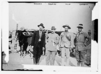 Keywords: Oroszco; Baniff; Villa; Garibaldi (LOC).jpg Bain News Service publisher - Oroszco; Baniff; Villa; Garibaldi - between 1910 and 1915 - 1 negative glass ; 5 x 7 in or smaller Pascual Orozco e i suoi colonnelli Oscar Braniff Pancho Villa e Peppino Garibaldi fotografati il 10 maggio 1911 dopo la presa di Ciudad Juárez durante la Rivoluzione messicana <b>Notes </b> Title from unverified data provided by the Bain News Service on the negatives or caption cards Forms part of George Grantham Bain Collection Library of Congress <b>Subjects </b> Mexico <b>Format </b> Glass negatives <b>Rights Info </b> No known restrictions on publication <b>Repository </b> Library of Congress Prints and Photographs Division Washington D C 20540 USA <a href http //hdl loc gov/loc pnp/pp print >hdl loc gov/loc pnp/pp print</a> General information about the Bain Collection is available at <a href http //hdl loc gov/loc pnp/pp ggbain >hdl loc gov/loc pnp/pp ggbain</a> <b>Persistent URL </b> <a href http //hdl loc gov/loc pnp/ggbain 09417 >hdl loc gov/loc pnp/ggbain 09417</a> <b>Call Number </b> LC-B2- 2227-2 originally posted to Flickr as http //flickr com/photos/8623220 N02/2162707307 Oroszco; Baniff; Villa; Garibaldi LOC 1910-01-01 00 00 00 http //flickr com/photos/8623220 N02 The Library of Congress User Flickr upload bot/upload-pd 04 47 26 February 2009 UTC Eluser PD-Old José Clemente Orozco Pancho Villa Peppino Garibaldi Alberto Braniff Ciudad Juárez |