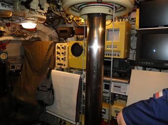 Keywords: ORP Orzel 1986 (8).JPG pl ORP Orzeł 1986 - wnętrze Centrala stanowisko dowodzenia - na pierwszym planie widoczna rura peryskopu own Kapitel 2012 ORP Orzeł submarine 1986 Cc-zero