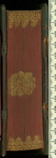 | Keywords: Orthodox Eastern Church -- Liturgy -- --Moskva - 7167, i.e. 1659.- - - Foreedge (1111a7).jpg Style Centre and cornerpiece Religious miscellaneous; Caption Foreedge; Colour Unspecified; Edge Red Gilt Black exhibition history Decorative Technique Tooled in blind Tooled in gold; Cover Material Leather unspecified Handwritten note on leave 2 some bits lost April 6th 1663 a Russian Almanach of Saints Bevelled wooden boards Traces of 2 clasps catching on to upper cover Combmarbled endleaves Ink ms shelf marks u;203 7 HHL spine damamaged Sewn on 3 douoble sewing supports Design on upper and lower covers differs Upper cover probably tooled in poor quality gold or silver which has oxidised Lower cover is blind tooled Fore edge is painted in red and gold with a floral motif Top and tail edges feature black motifs including arrows object history Text 1559; Moscow; Sloane Hans 1660-1753 object type Cc-zero place of creation Binding Russia place of discovery Unspecified British Library image http //www bl uk/catalogues/bookbindings/LargeImage aspx RecordId 020-000017684 ImageId ImageId 56666 Copyright BL Orthodox Eastern Church -- Liturgy -- Moskva 7167 i e 1659 Uploaded with GWToolset Orthodox Eastern Church -- Liturgy -- Moskva 7167 i e 1659 - Foreedge 1111a7 http //www webarchive org uk/bldatasets/bindings/1111a7edg jpg Bookbinding 17th-century bookbinding British Library Bookbindings |