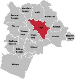 Keywords: Ortsteile Lage (Lippe) Lage.svg Ortsteile der Stadt Lage Lage von Lage own 2010-03-28 de User DaBroMfld based on work of field PD-release Maps of Lage Lippe