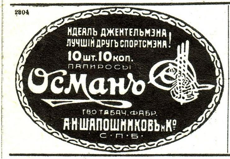 | Keywords: Osman cigarettes from Niva Magazine.jpg «Папи осы Осман идеал джентельмэна лучший д уг спо тсмэна 10 штук 10 копеек» Па адоксальная еклама к епких папи ос для спо тсменов табачной фаб ики А Шапошникова СПб « ива» номе 11 за 1914 год от 15 ма та Cigarettes Osman Advertisement from Niva Magazine issue 11 from March 15 1911 Скан - Жу нал ива 1914 год 11 1914 / PD-old-70 PD-RusEmpire Original upload log ru wikipedia Alex-engraver CommonsHelper page ru wikipedia 1914_ D0 9F D0 B0 D0 BF D0 B8 D1 80 D0 BE D1 81 D1 8B_ D0 9E D1 81 D0 BC D0 B0 D0 BD_ D0 B8 D0 B4 D0 B5 D0 B0 D0 BB_ D0 B4 D0 B6 D0 B5 D0 BD D1 82 D0 BB D1 8C D0 BC D0 B5 D0 BD D0 B0_ D0 BB D1 83 D1 87 D1 88 D0 B4 D1 80 D1 83 D0 B3_ D1 81 D0 BF D0 BE D1 80 D1 82 D1 81 D0 BC D1 8D D0 BD D0 B0_ D0 9D D0 B8 D0 B2 D0 B0_11_15_ D0 BC D0 B0 D1 80 D1 82 D0 B0 jpg 2009-06-19 18 07 Vizu 785×543× 110903 bytes <nowiki> Описание 1 Источник 1 В емя создания 1 Авто 1 </nowiki> Advertisements in Russia Images from Niva magazine 1914 Cigarette advertisements Osman |