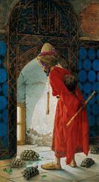 Keywords: Osman Hamdi Bey 001.jpg Tortoise Trainer; oil on canvas 221 5 x 120 cm According to modern researchers Bettelheim Matthew P and Ertan Taskavak 2006 The Tortoise and the Tulip - Testudo graeca ibera and Osman Hamdi's The Tortoise Trainer Bibliotheca Herpetologica 6 2 pp 11-15 the animals portrayed are Testudo graeca ibera a variety of the Spur-thighed Tortoise Kaplumbağa Terbiyecisi Д есси овщик че епах Institution Pera Museum Online Gallery http //en peramuzesi org tr/Artwork/The-Tortoise-Trainer/92/15 page 1906 Creator Osman Hamdi Bey PD-old-100 <gallery> File Osman Hamdi Bey - The Tortoise Trainer jpg First version 1906 File Kaplumbağa Terbiyecisi vers2 jpg Second version 1907 </gallery> Paintings in the Pera Museum Paintings by Osman Hamdi Bey Tortoises in art Testudo graeca Uploads by User Cretanforever 1906 paintings Animal training Dervishes in art Ney Drums in art |