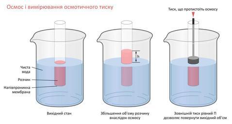Keywords: Osmosis and osmotic pressure uk.svg uk Осмос і вимі ювання осмотичного тиску Склянка заповнена чистою водою а т убка - озчином а дні т убки озташована напівп оникна мемб ана че ез яку дифундує вода але не озчинена ечовина Внаслідок осмосу об'єм озчину з остає Тиск який слід п икласти до нього щоб пове нути вихідний об'єм називається осомтичним тиском 2013-02-16 18 27 57 похідна обота від Beakers svg Zlir'a cc-zero Uploaded with UploadWizard Osmosis Diagrams in Ukrainian