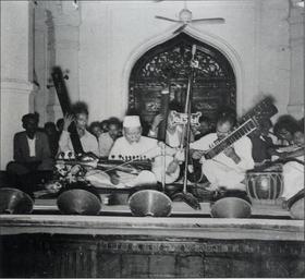 Keywords: Ostad Alauddin Khan at Karjon Hall 1955.png বাংলা ১৯৫৫ সালের শ তকালে কার্ ন হলে সারোদ বা াচ্ছেন ওস্তাদ আলাউদ্দিন খান সঙ্গে সেতারে ওস্তাদ খাদেম হোসেন খান।<br>English Winter 1955 Ustad Alauddin Khan playing sharod in Karjon hall accompanied by Ustad Khadem Hossain Khan playing setar Author's Album 1955 Prof Rafiqul Islam PD-Pakistan GFDL cc-by-3 0 Photos by Rafiqul Islam People with sitars