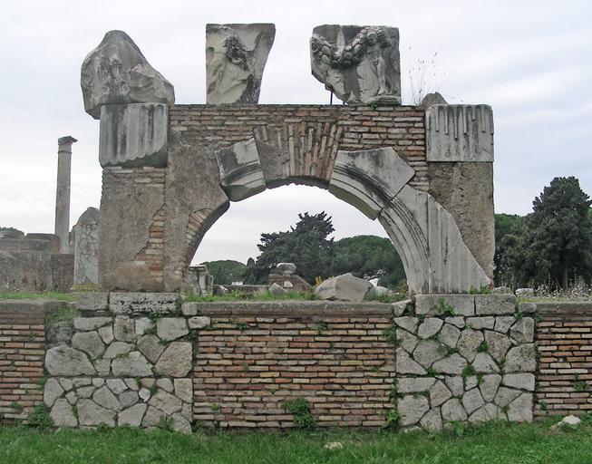 Keywords: OstiaAnticaBasilicaRicostruzioneArcoFacciata.jpg en Ostia Antica archeological site Basilica one of the arches reconstruction it Ostia antica sito archeologico Basilica uno degli archi della facciata sulla piazza del Foro ricostruito own MM 2009-11 Basilica civile Ostia Antica Ancient Roman archivolts Ancient Roman Corinthian capitals in Italy Ostia |