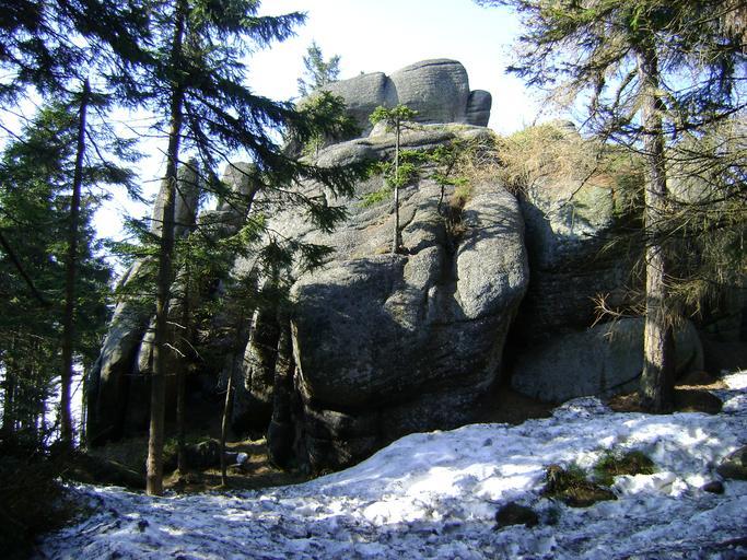 Keywords: Ostra Mała mit2.JPG pl Formy skalne nawzniesieniu Ostra Mała w południowo-zachodniej Polsce w Sudetach Zachodnich w Rudawach Janowickich woj dolnośląskie Jedna z form skalnych tzw Koni Apokalipsy own Timaska 2009-04-14 Rudawy Janowickie