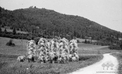 | Keywords: Ostrnice v Podložu, zadaj Križna gora 1962.jpg Ostrnice v Podložu zadaj Križna gora susenje-pridelkov/f0000019013 1962-08 creator Fanči Šarf watermark PD-Slovenia 1962 in Slovenia Podlož Hay drying poles in Slovenia Cross Mountain Photographs by Fanči Šarf |