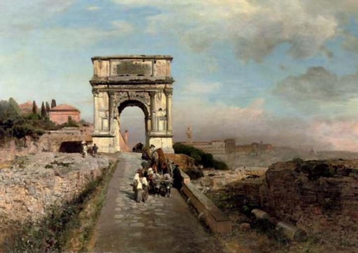 | Keywords: Oswald Achenbach - Passing through The Arch of Titus on the Via Sacra, Rome.jpg Artwork Creator Oswald Achenbach Durch den Titusbogen auf der Via Sacra in Rom 1891 Oil canvas cm 70 100 accession number object history credit line Osw Achenbach/1891 ~ lower right signature / date christies online 4898973 2740 205 Amsterdam 25 April 2007 PD-old-100 DEFAULTSORT Achenbach Oswald; Landscape Italy Rome 1891; Christies 2007 Paintings by Oswald Achenbach Arch of Titus Rome in art 1800s Landscape paintings of Italy 1891 paintings 1890s landscape paintings |