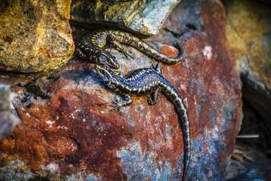 Keywords: texture outdoor Grand and Otago skinks are two of New Zealand's most distinctive and impressive lizards. Known as giant skinks, they are our largest lizards, with Otago skinks growing up to 300 mm in length and grand skinks 230 mm. Unlike many lizards overseas, both species are omnivorous, diurnal, and don't hibernate. They can live for up to 20 years in the wild, and like all lizards in this country, give birth to live young - two or three a year. Both species are distinctively marked, which is why southern Māori know them as mokomoko. Grand skinks are black with yellowish flecks, and Otago skinks, black with grey, green, or yellowish blotches. These cryptic colour patterns provide great camouflage, amid the lichen-covered schist rocks they inhabit. www.doc.govt.nz/nature/native-animals/reptiles-and-frogs/... en.wikipedia.org/wiki/Skink Grand and Otago skinks are two of New Zealand's most distinctive and impressive lizards. Known as giant skinks, they are our largest lizards, with Otago skinks growing up to 300 mm in length and grand skinks 230 mm. Unlike many lizards overseas, both species are omnivorous, diurnal, and don't hibernate. They can live for up to 20 years in the wild, and like all lizards in this country, give birth to live young - two or three a year. Both species are distinctively marked, which is why southern Māori know them as mokomoko. Grand skinks are black with yellowish flecks, and Otago skinks, black with grey, green, or yellowish blotches. These cryptic colour patterns provide great camouflage, amid the lichen-covered schist rocks they inhabit. www.doc.govt.nz/nature/native-animals/reptiles-and-frogs/... en.wikipedia.org/wiki/Skink |