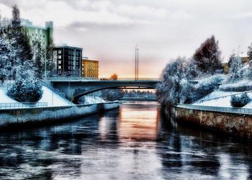 Keywords: oulu finland city cities urban canal water bridge architecture winter snow ice reflections hdr outside trees buildings