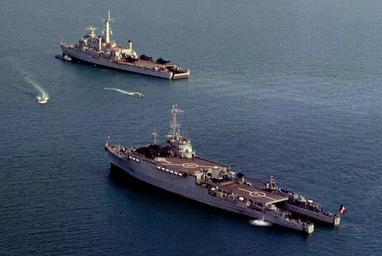 Keywords: Ouragan HMS-Intrepid DN-SC-90-08863rc.jpg Original description <br> A port quarter view of the French landing ship dock FS OURAGAN L-9021 foreground its stern gate open for landing craft operations and the British amphibious transport dock HMS INTREPID L-11 sitting offshore during the NATO Southern Region exercise DRAGON HAMMER '90 Camera Operator PH1 AW RAYMOND H TURNER II Date Shot 3 May 1990 ID DNSC9008863 Source resized and croped hi-res picture http //www dodmedia osd mil/Assets/1990/Navy/DN-SC-90-08863 JPG from http //www dodmedia osd mil PD-USN International groups of naval ships HMS Intrepid L11 Ouragan L9021 Stern gates Dragon-Hammer90 |