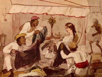 Keywords: Ourclothmerchant.jpg en Our Station from 'Curry and Rice on Forty Plates or The Ingredients of Social Life at Our Station in India by Captn Geo F Atkinson'; the frontispiece ; a list of the contents A series of colored prints depicting British colonial life in a small North Indian station drawn by George Franklin Atkinson 1822-1859 and published in 1858 with later reprints The images below sometimes cut off small bits of the edges of the originals Our Agriculturalists Our Ball Our Band Our Bath Our Bazar Our Bedroom Our Burra Khanah Our Cloth Merchant Our Coffee Shop Our Colonel Our Colonel's Wife Our Cook Room Our Departure for Home Our Doctor Our Doctor's Wife Our Farm Yard Our Garden Our Invalid Major Our Joint Magistrate Our Judge Our Judge's Wife Our Magistrate Our Magistrate's Wife Our Mall Our Missionary Our Moonshee Our Nuwab Our Pack of Hounds Our Padre Our Pig Sticking Our Race Course Our Sporting Griff Our Stage Coaching Our Theatricals Our Tiger-Shooting Our Travellers' Bungalow Our Wedding Source ebay Oct 2004 1822-1859 and published in 1858 with later reprints http //www columbia edu/itc/mealac/pritchett/00routesdata/1800_1899/dailylife_drawings/ourstation/ourstation html George Franklin Atkinson 1822-1859 PD-Art Uploaded with UploadWizard George Francklin Atkinson 'Curry and Rice on Forty Plates or The Ingredients of Social Life at Our Station in India' London John B Day 1858 |