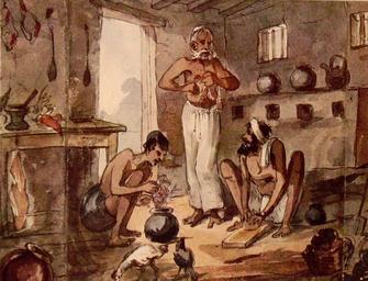 Keywords: Ourcookroom.jpg en Our Station from 'Curry and Rice on Forty Plates or The Ingredients of Social Life at Our Station in India by Captn Geo F Atkinson'; the frontispiece ; a list of the contents A series of colored prints depicting British colonial life in a small North Indian station drawn by George Franklin Atkinson 1822-1859 and published in 1858 with later reprints The images below sometimes cut off small bits of the edges of the originals Our Agriculturalists Our Ball Our Band Our Bath Our Bazar Our Bedroom Our Burra Khanah Our Cloth Merchant Our Coffee Shop Our Colonel Our Colonel's Wife Our Cook Room Our Departure for Home Our Doctor Our Doctor's Wife Our Farm Yard Our Garden Our Invalid Major Our Joint Magistrate Our Judge Our Judge's Wife Our Magistrate Our Magistrate's Wife Our Mall Our Missionary Our Moonshee Our Nuwab Our Pack of Hounds Our Padre Our Pig Sticking Our Race Course Our Sporting Griff Our Stage Coaching Our Theatricals Our Tiger-Shooting Our Travellers' Bungalow Our Wedding Source ebay Oct 2004 1822-1859 and published in 1858 with later reprints http //www columbia edu/itc/mealac/pritchett/00routesdata/1800_1899/dailylife_drawings/ourstation/ourstation html George Franklin Atkinson 1822-1859 PD-Art Uploaded with UploadWizard George Francklin Atkinson 'Curry and Rice on Forty Plates or The Ingredients of Social Life at Our Station in India' London John B Day 1858 |