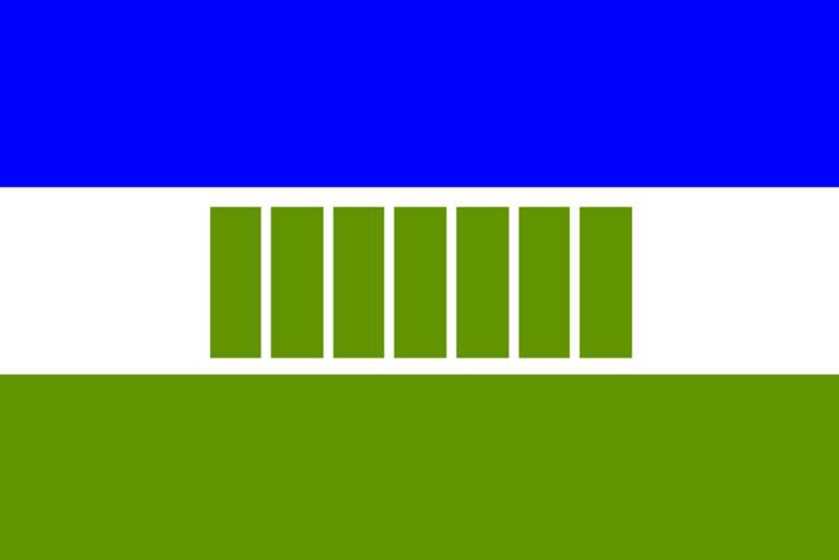 Keywords: Ovamboland flag.png Ovamboland flag svg Drapeau de l'Ovamboland Namibie Source Wikipedia anglais Auteur Mysid Ovambo was the first of the Homelands in South West Africa to acquire its own symbols of sovereignty A mace for the Legislative Council arms and flag were subsequently formally adopted The design of the flag of Ovambo is set out in section 2 of the Ovambo Flag Act 1973 which reads as follows <em> The Ovambo Flag shall be a flag consisting of three horizontal stripes of equal width from top to bottom of blue white and olive-green on which there shall appear in the centre of the white stripe seven vertical olive-green staves of equal measurement symmetrically arranged The width of the Ovambo flag shall be equal to two-thirds of its length The width of each vertical stave shall be equal to one-twentieth of the length of the flag The distance between the vertical stave mutually and between the vertical staves and the blue and olive-green stripes shall be equal to half the width of the stave </em> There are seven Ovambo tribes the Kwanyma Ndonga Kwambi Ngandjera Mbalantu Kwaluudi and Kolonkathi-Eunda - hence the seven staves in the flag Mysid insignia DEFAULTSORT Ovamboland Ovambo people Flag Flags of South-West African Bantustans Flags with three horizontal stripes of blue white green combination |