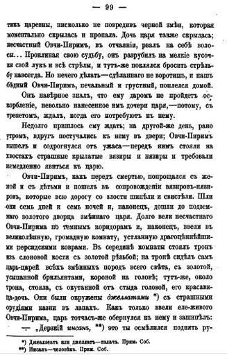 Keywords: Ovchu Pirim 99.jpg en Part of the Ovchu Pirim fairy tale Сбо ник мате иалов для описания местностей и племен Кавказа Выпуск седьмой Отдел II Ст 99 Azerbaijani folk fairy tale written by Alexander Kalashev 1889 PD-old Ovchu Pirim