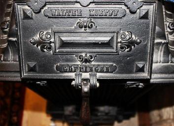 Keywords: oven oven door close up old cast iron antique ornaments museum piece