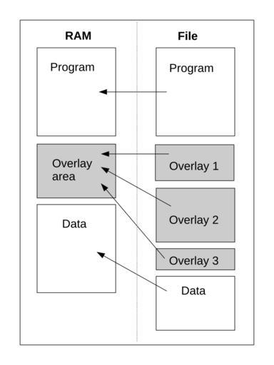 Keywords: Overlay Programming.svg Schema Overlay Programmierung Dateien und RAM-Speicher Schema overlay programming files/memory Own 2014-02-16 Hubert Berberich HubiB public domain Computer programming