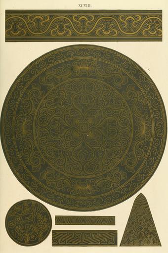 Keywords: Owen Jones - Examples of Chinese Ornament - 1867 - plate 098.png 097 XCVIII 98 099 Inlaid bronze Dish PD-old-100-1923 Bronze of China Metalwork dishes Floral designs in China