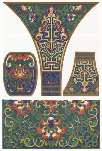Keywords: Owen Jones - Examples of Chinese Ornament - 1867 - plate 032.png 031 XXXII 32 033 From a square Vase in cloisonné enamel The outline of this vase is very elegant and the composition of the ornament contrasting with the curved lines is very fine The pattern on the lower half of the plate is from the inside of the lip Aristeas Archival version Owen Jones - Examples of Chinese Ornament - 1867 - plate 032 - 300ppi jpg PNG PD-old-100-1923 Cloisonné of China Vases of China Floral patterns Floral designs in China Fret patterns |