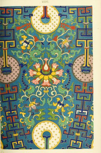 Keywords: Owen Jones - Examples of Chinese Ornament - 1867 - plate 036.png 035 XXXVI 36 037 From a large Jar in cloisonné enamel The style of this composition is essentially Chinese; though very brilliant in colouring it is much less perfect in art than the compositions in which we recognise a foreign influence PD-old-100-1923 Cloisonné of China Chinese jars Metal jars Floral designs in China Floral patterns Fret patterns |