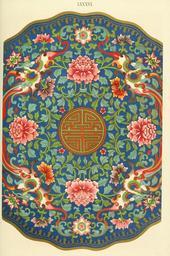 Keywords: Owen Jones - Examples of Chinese Ornament - 1867 - plate 086.png 085 LXXXVI 86 087 Portion of a painted china Dish four dragons guarding the labyrinth form the subject of the composition the flowers are most artistically arranged in the fragmentary style The four dragons as Jones calls them do not look like typical dragons in Chinese art Could these four creatures be some kind of birds maybe a Phoenix Again like in his comment on plate LXXIII Jones calls the Chinese character in the centre a labyrinth But isn ™t it just a stylized Shou character or something similar PD-old-100-1923 Porcelain of China Porcelain designs Floral designs in China Animals in Chinese art 寿 |