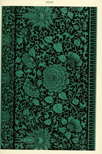 Keywords: Owen Jones - Examples of Chinese Ornament - 1867 - plate 089.png 088 LXXXIX 89 090 From a large painted china Cistern This composition is thoroughly Indian like Plates LXXVIII LXXX and LXXXVII PD-old-100-1923 Porcelain of China Floral designs in China Floral patterns Black and green |