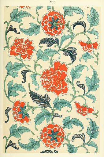 Keywords: Owen Jones - Examples of Chinese Ornament - 1867 - plate 092.png 091 XCII 92 093 From a painted china Vase A bold composition on the continuous-stem principle PD-old-100-1923 Porcelain of China Vases of China Floral designs in China