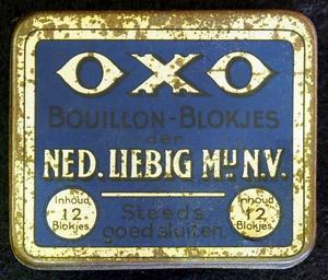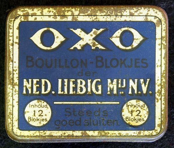 Keywords: OXO Bouillon-Clokjes der Ned Liebig Mij NV blikje.JPG Very old product that is not produced and not sold any more Note that some tins may look the same but when looked for carefully there are some slight differences For more info see http //www tincollectors nl/ tincollectors nl or email info tincollectors nl own 2014-10-31 12 38 39 Alf van Beem CC-zero Trademarked Tins |