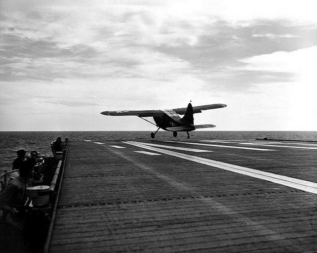 | Keywords: OY-2 Sentinel takeoff.jpg U S Marine Corps OY-2 Sentinel spotter plane takes off from the USS Sicily CVE-118 during operations in the Yellow Sea off the west coast of Korea 22 September 1950 The Sicily was then supporting the campaign to recapture Seoul http //www history navy mil/photos/events/kowar/50-unof/un-5s htm Land Operations around Seoul September - October 1950 The Korean War 1950-1953 Naval Historical Center Department of the Navy <br> http //www history navy mil/photos/images/g420000/g420239 jpg g420239 jpg 1950-09-22 United States Navy Official U S Navy Photo 80-G-420239 As a work of the U S Navy this photo is in the public domain Now in the U S National Archives PD-USGov-Military-Navy USS Sicily CVE-118 Stinson L-5 Sentinel |