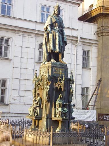 | Keywords: P2100100.JPG Socha Karla IV na Křižovnickém náměstí v Praze postavená u příležitosti pětistého výročí založení Karlovy univerzity Sochy žen po obdvodu podstavce symbolizují jednotlivé fakulty teologickou lékařskou artistickou a právnickou Statue of Charles IV Holy Roman Emperor in Křižovnické Square A monument placed nearby Charles Bridge Prague in 1848 to commemorate the 500th anniversary of establishing the University of Prague by Charles IV women statues around the pedestal symbolize faculties of the university It is an iron statue by Arnost Hndel from Dresden Denkmal Kaiser Karls IV in Prag Socha Karla IV Kŕižovnícke nám Praha own Lady Rowena Statue of Charles IV at Křižovnické náměstí |