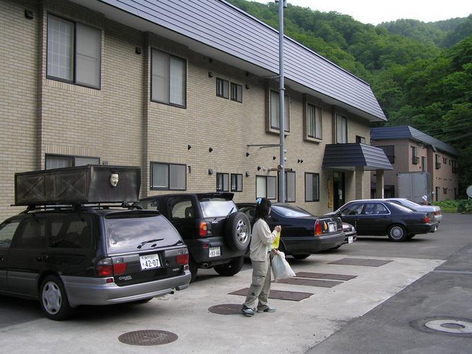 Keywords: 二股ラヂウム温泉玄関P6190050.JPG 二股ラヂウム温泉玄関 唐山健志郎 2006.6.19 唐山健志郎 PD Futamata-Radium Onsen Parking