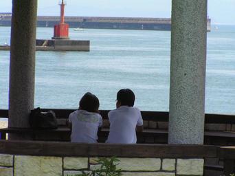 Keywords: 真夏の海P7302255.JPG 夏の海 岡明芳 2006.7 30 岡明芳 PD なし Couples in Japan Seas of Japan White clothing