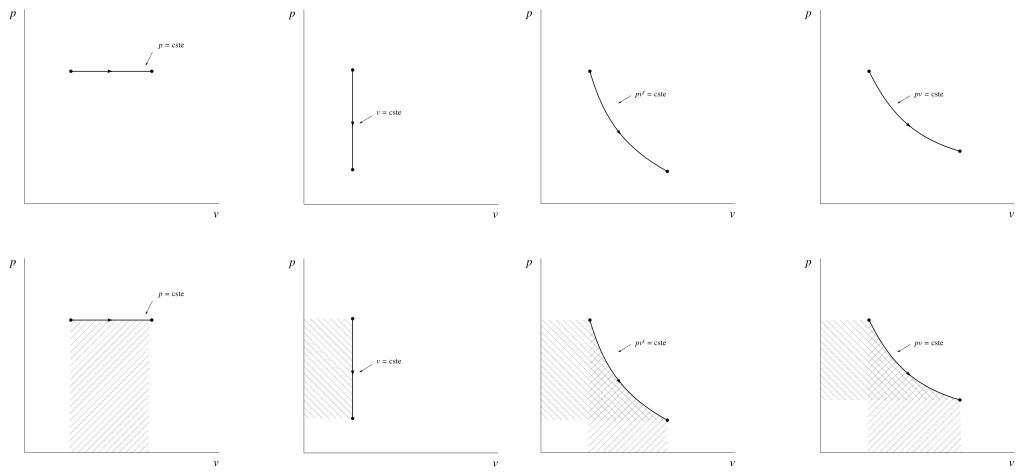 | Keywords: P-v diagrams elementary evolutions of perfect gas.svg en Four elementary evolutions constant pressure constant temperature constant entropy constant volume of a gas represented on a pressure-volume diagram When the evolutions are reversible the integration of -p dv in a closed system or of v dp in an open system represents the work done by the fluid 2013 own Olivier Cleynen other versions cc-zero Pressure-volume diagrams SVG physics Uploaded with UploadWizard Isochoric process Isentropic process Isothermal process Isobaric process |