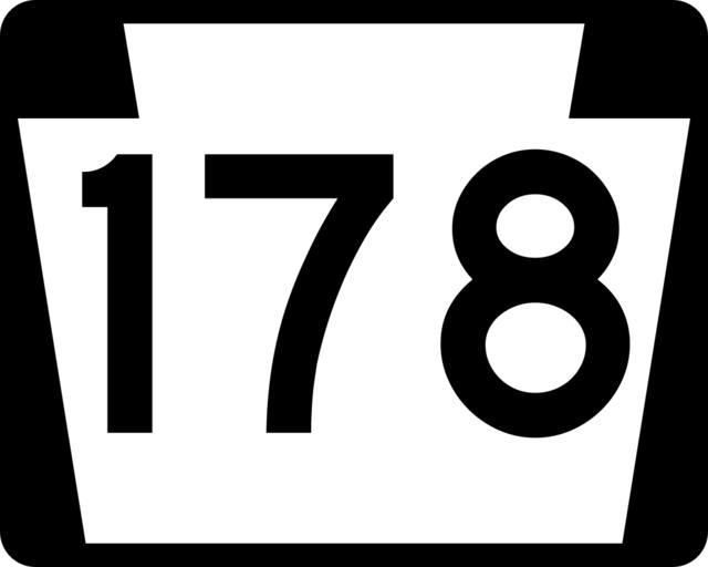 Keywords: PA-178.svg 750 mm by 600 mm 30 in by 24 in Pennsylvania shield made to the specifications of the Manual on Uniform Traffic Control Devices MUTCD 2003 Edition sign M1-5 Uses the Roadgeek 2005 fonts United States law does not permit the copyrighting of typeface designs and the fonts are meant to be copies of a U S Government-produced work anyway Own 2006-11-25 TwinsMetsFan Public Domain Pennsylvania Route shields 178 |