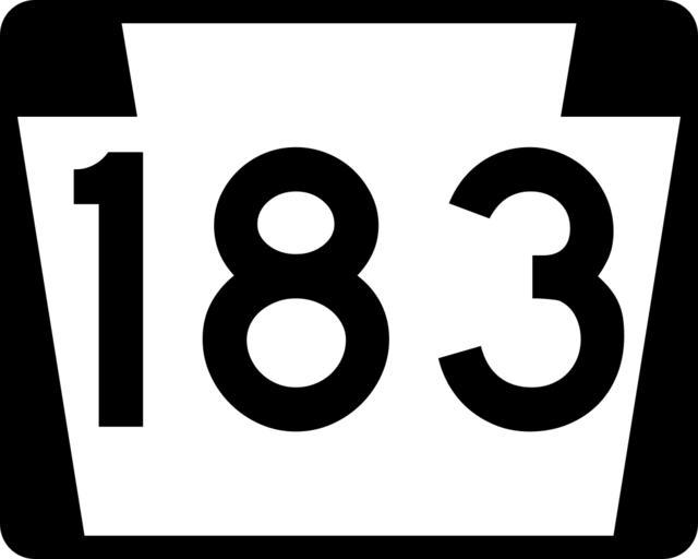 | Keywords: PA-183.svg 750 mm by 600 mm 30 in by 24 in Pennsylvania shield made to the specifications of the Manual on Uniform Traffic Control Devices MUTCD 2003 Edition sign M1-5 Uses the Roadgeek 2005 fonts United States law does not permit the copyrighting of typeface designs and the fonts are meant to be copies of a U S Government-produced work anyway own 2006-07-16 TwinsMetsFan Public Domain Pennsylvania Route shields 183 | ||||