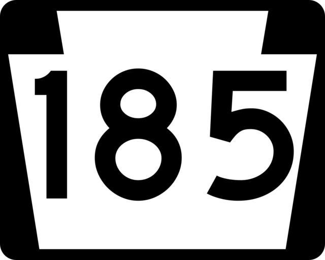 Keywords: PA-185.svg 750 mm by 600 mm 30 in by 24 in Pennsylvania shield made to the specifications of the Manual on Uniform Traffic Control Devices MUTCD 2003 Edition sign M1-5 Uses the Roadgeek 2005 fonts United States law does not permit the copyrighting of typeface designs and the fonts are meant to be copies of a U S Government-produced work anyway Own 2006-11-29 TwinsMetsFan Public Domain Pennsylvania Route shields 185 185 number |