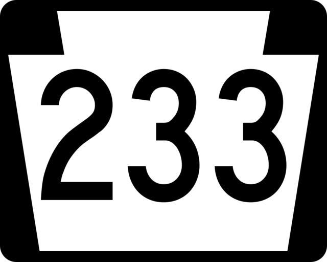 | Keywords: PA-233.svg 750 mm by 600 mm 30 in by 24 in Pennsylvania shield made to the specifications of the Manual on Uniform Traffic Control Devices MUTCD 2003 Edition sign M1-5 Uses the Roadgeek 2005 fonts United States law does not permit the copyrighting of typeface designs and the fonts are meant to be copies of a U S Government-produced work anyway Own 2006-11-16 TwinsMetsFan Public Domain Pennsylvania Route shields 233 233 number Pennsylvania Route 233 | ||||