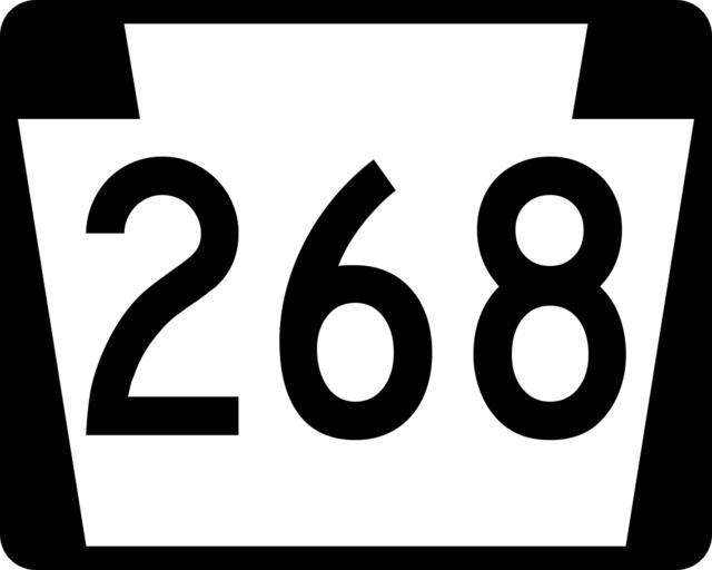 Keywords: PA-268.svg 750 mm by 600 mm 30 in by 24 in Pennsylvania shield made to the specifications of the Manual on Uniform Traffic Control Devices MUTCD 2003 Edition sign M1-5 Uses the Roadgeek 2005 fonts United States law does not permit the copyrighting of typeface designs and the fonts are meant to be copies of a U S Government-produced work anyway own 2006-07-19 Homefryes Public Domain Pennsylvania Route shields 268 Pennsylvania Route 268 |