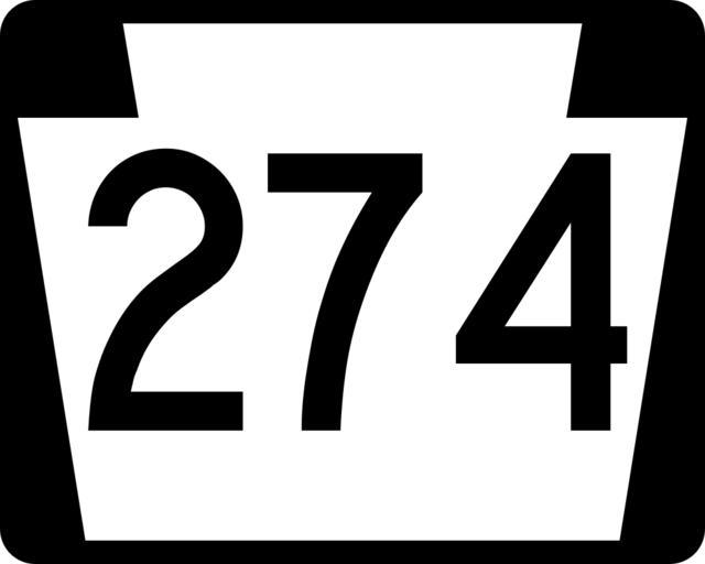 Keywords: PA-274.svg 750 mm by 600 mm 30 in by 24 in Pennsylvania shield made to the specifications of the Manual on Uniform Traffic Control Devices MUTCD 2003 Edition sign M1-5 Uses the Roadgeek 2005 fonts United States law does not permit the copyrighting of typeface designs and the fonts are meant to be copies of a U S Government-produced work anyway Own 2006-11-16 TwinsMetsFan Public Domain Pennsylvania Route shields 274 |
