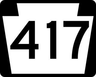 Keywords: PA-417.svg 750 mm by 600 mm 30 in by 24 in Pennsylvania shield made to the specifications of the Manual on Uniform Traffic Control Devices MUTCD 2003 Edition sign M1-5 Uses the Roadgeek 2005 fonts United States law does not permit the copyrighting of typeface designs and the fonts are meant to be copies of a U S Government-produced work anyway Own 2006-11-29 TwinsMetsFan Public Domain Pennsylvania Route shields 417 |